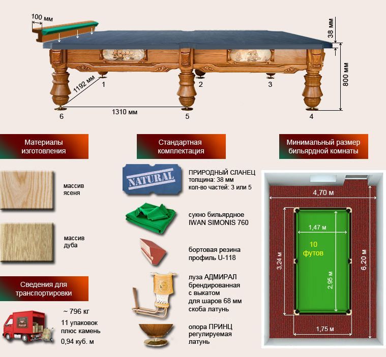 Гигант 12 футов с плитой весит тонну. Точно ли выдержит перекрытие этажа? «Десятку» реальней поставить даже в квартире. Разница всё ещё маловата. Но всё-таки выбор часто оказывается в пользу бильярда 10 футов.